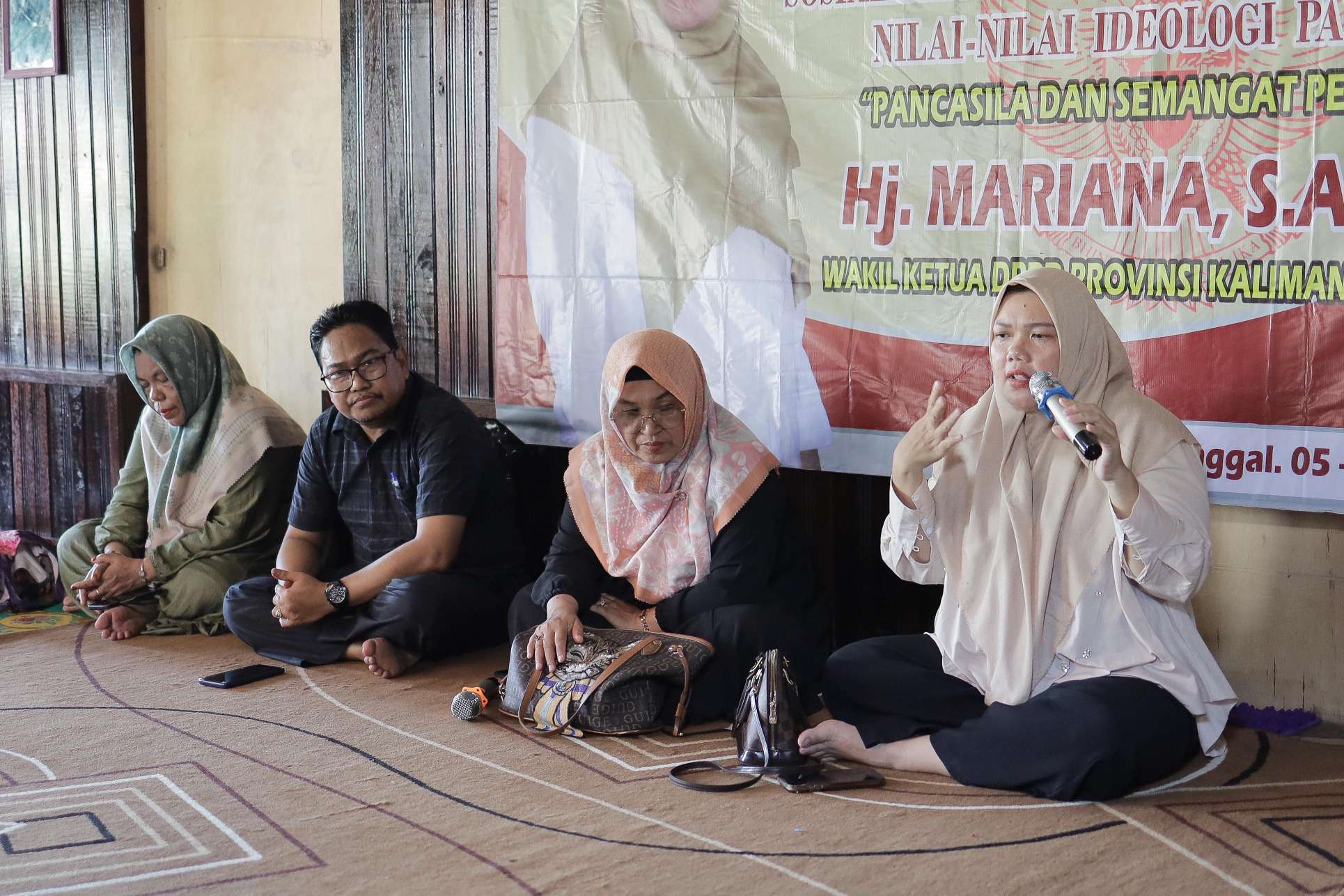 BATULICIN – Wakil Ketua DPRD Kalsel, Mariana, menggelar Sosialisai Wawasan Kebangsaan di Desa Sungai Cuka, Tanah Bumbu, Sabtu (6/4).