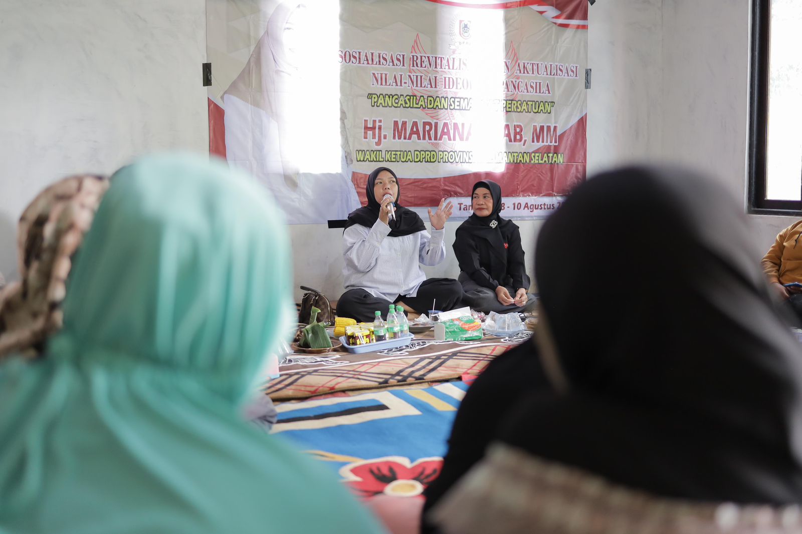 Wakil Ketua Dewan Perwakilan Rakyat Daerah (DPRD) Provinsi Kalimantan Selatan (Kalsel), Mariana, menggelar Sosialisasi Revitalisasi dan Aktualisasi Nilai-nilai Ideologi Pancasila (Sosrev), Jumat (9/8) di Desa Tirta Jaya, Kecamatan Bajuin, Kabupaten Tanah Laut.