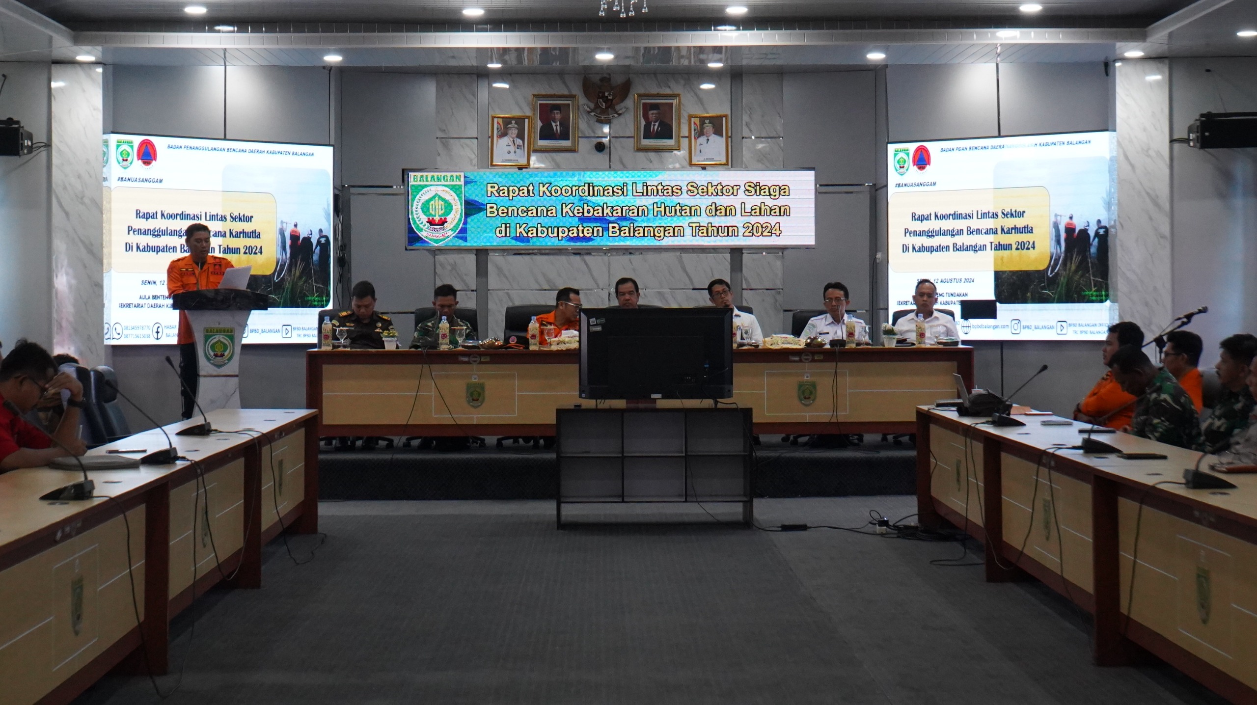 Rapat tersebut dihadiri oleh Asisten Bidang Pemerintahan dan Ekonomi Setda Balangan, Tuhalus, perwakilan Polres Balangan, Dandim 1001/HSU-Balangan, narasumber dari BMKG Kelas 1 Banjarbaru, serta sejumlah perusahaan dan organisasi lainnya.