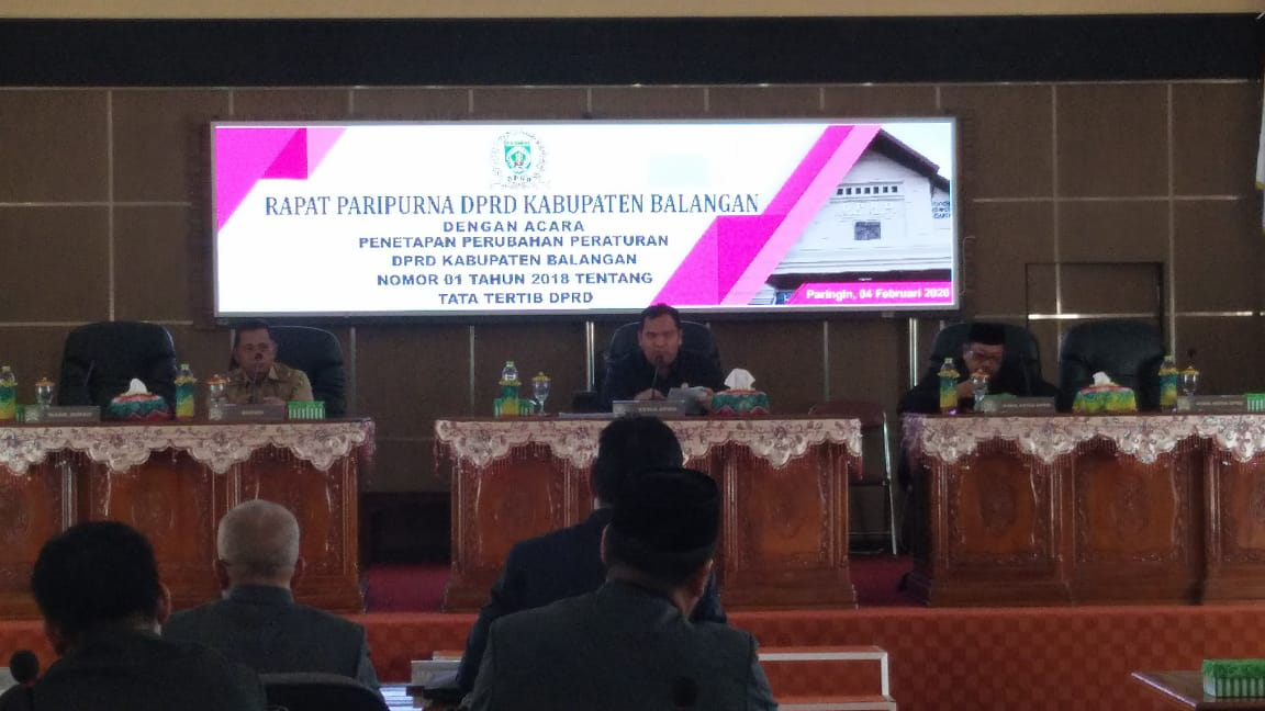 DPRD Kabupaten Balangan menggelar Rapat Paripurna khusus untuk membahas perubahan Peraturan DPRD No. 1 Tahun 2018 tentang Tata Tertib. Perubahan ini disesuaikan dengan kebijakan baru dari pemerintah pusat, khususnya PP No. 12 Tahun 2019 dan PP No. 13 Tahun 2019.