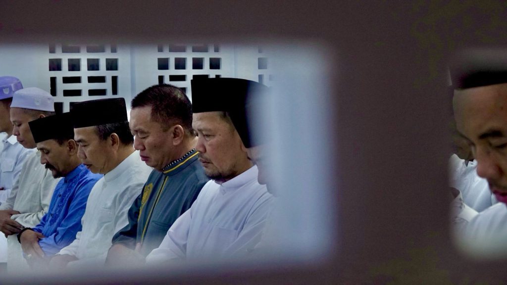 Pukul 18.43 Wita, Gubernur bersama sejumlah pejabat menuju musala untuk melaksanakan salat Magrib berjemaah. Barisan shaf terisi penuh oleh jemaah laki-laki maupun perempuan, menciptakan suasana khusyuk dan penuh kebersamaan. Setelah salat, acara dilanjutkan dengan wirid, doa bersama, dan ditutup dengan makan malam bareng antara Gubernur dan seluruh pejabat Pemprov Kalsel.