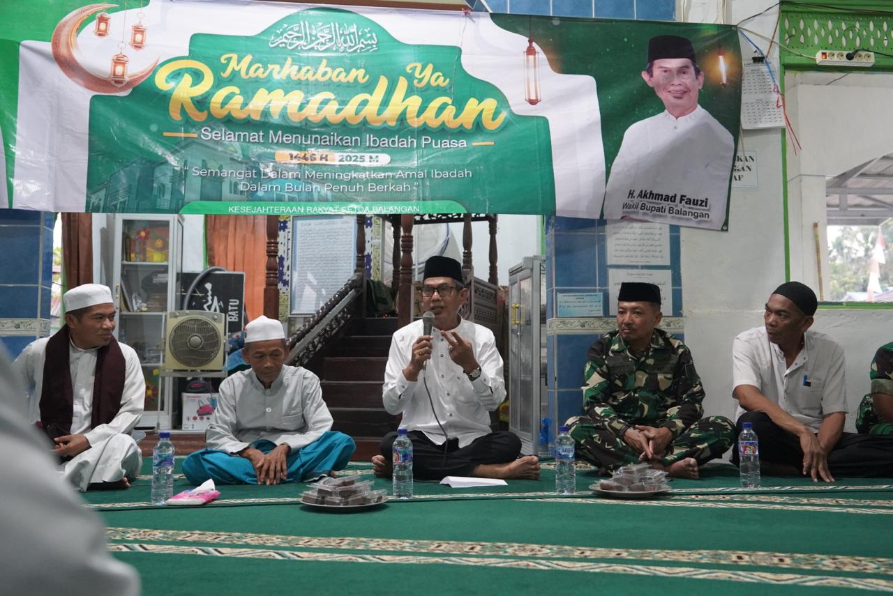 Memasuki hari ke-12 Ramadan, Wakil Bupati Balangan, Akhmad Fauzi, melanjutkan rangkaian Safari Ramadan di Masjid Darul Ikhsan, Desa Gunung Batu, Kecamatan Tebing Tinggi, Rabu, (12/3/2025).