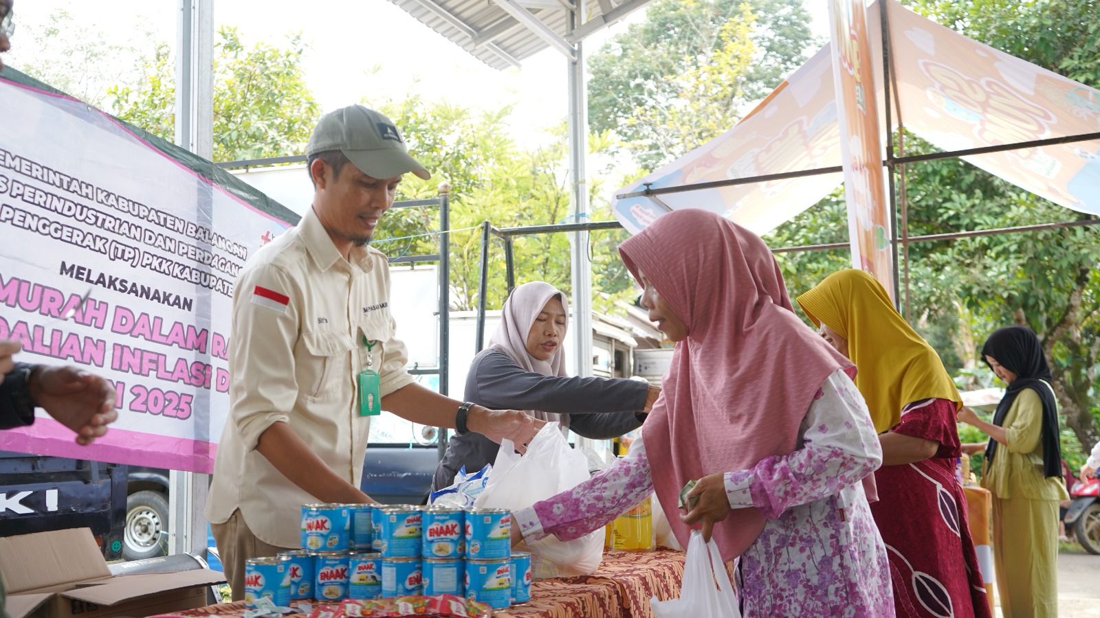 Dinas Perindustrian dan Perdagangan (Disperindag) Kabupaten Balangan bekerja sama dengan Dinas Ketahanan Pangan, Pertanian, dan Perikanan (DKP3) menggelar pasar murah di Desa Tigarun, Kecamatan Juai, Rabu (23/4/2025).