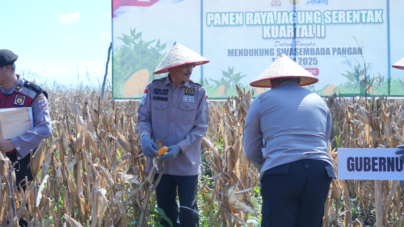 MARTAPURA – Ketua DPRD Provinsi Kalimantan Selatan, Dr. H. Supian HK, S.H., M.H., mengapresiasi capaian Kepolisian Daerah (Polda) Kalsel yang berhasil menggelar panen raya jagung di lahan basah seluas 41.985 ton. Panen tersebut dilaksanakan pada Kamis (5/6) di lahan Gubernur Syarkawi Km 5, Desa Padang Panjang, Kecamatan Sungai Tabuk, Kabupaten Banjar.