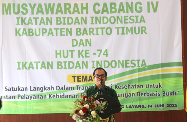 TAMIANGLAYANG – Penjabat Sekretaris Daerah Kabupaten Barito Timur, Misnohartaku, secara resmi membuka Musyawarah Cabang (Muscab) ke-IV Ikatan Bidan Indonesia (IBI) Kabupaten Barito Timur Tahun 2025. Kegiatan berlangsung di Aula Rumah Jabatan Bupati Barito Timur, Sabtu (14/6/2025).