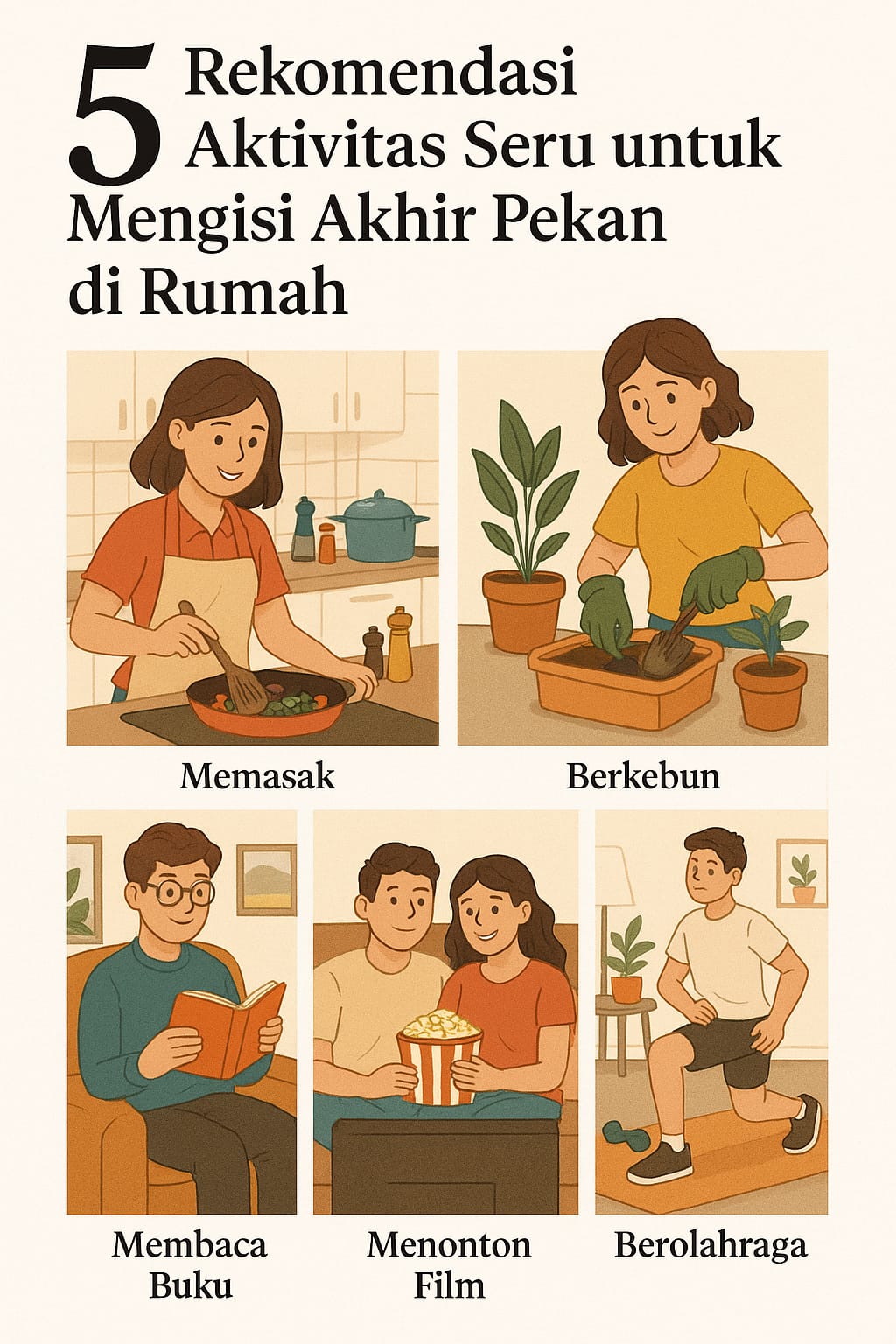 Akhir pekan sering jadi momen yang ditunggu-tunggu untuk beristirahat, tapi tak jarang juga malah terasa membosankan. Terutama kalau kamu memilih untuk tetap di rumah. Tapi tenang, tak selalu perlu jalan-jalan untuk bisa merasa “refresh”. Berikut lima aktivitas ringan yang bisa bikin akhir pekanmu tetap seru meski tanpa keluar pintu.