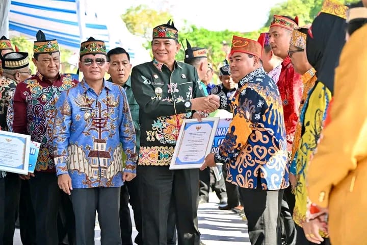 Usai upacara, Gubernur menyerahkan penghargaan kepada koperasi berprestasi dari berbagai daerah se-Kalimantan Tengah.