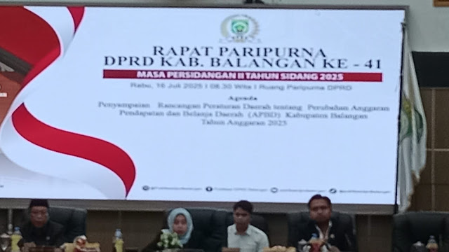 BALANGAN – Pemerintah Kabupaten Balangan bersama DPRD Kabupaten Balangan secara resmi menyampaikan Rancangan Peraturan Daerah (Raperda) tentang Perubahan Anggaran Pendapatan dan Belanja Daerah (APBD) Tahun Anggaran 2025 dalam Rapat Paripurna DPRD Balangan, Rabu (16/7/2025), di Ruang Sidang Paripurna DPRD.