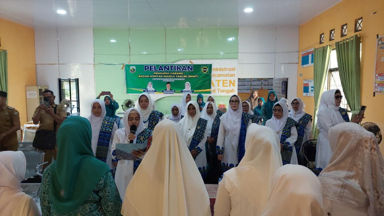 Pelantikan tersebut dihadiri Plt Camat Pulau Laut Tengah Ibrahim, S.Sos, unsur Forkopimca, serta jajaran pengurus dan anggota BKMT.