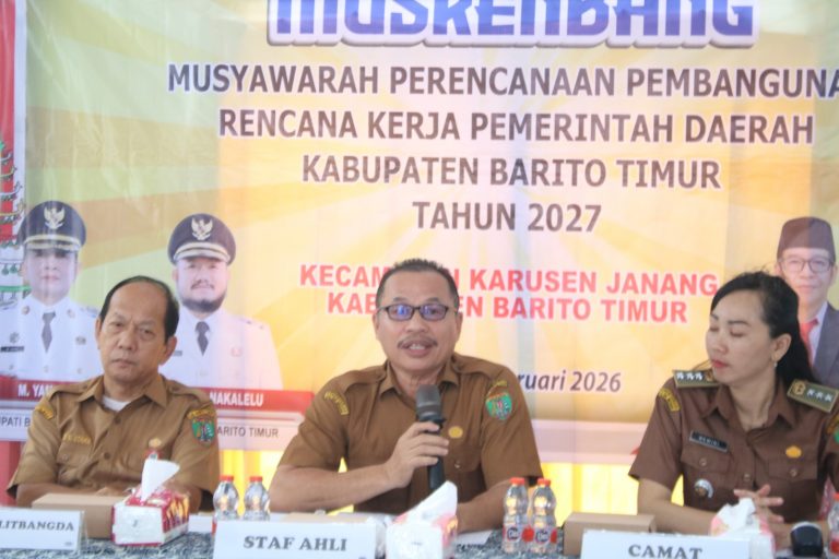 Tamiang Layang — Musyawarah Perencanaan Pembangunan (Musrenbang) Kecamatan Karusen Janang Tahun 2026 membahas total 138 usulan dari tujuh desa. Kegiatan ini dibuka Staf Ahli Bupati Barito Timur, Alvianson, di Aula Kantor Kecamatan Karusen Janang, Selasa (3/2/2026).