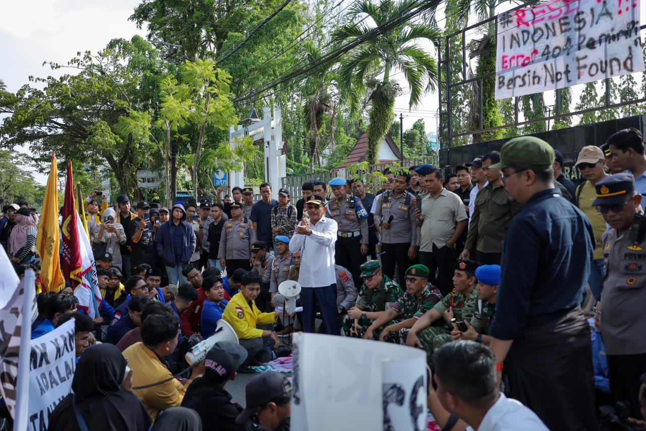 Sekitar 300 mahasiswa menyampaikan sejumlah tuntutan yang mencakup isu penegakan hukum, lingkungan hidup, hingga kebijakan publik, baik di tingkat daerah maupun nasional. Aksi tersebut juga dihadiri unsur Forum Koordinasi Pimpinan Daerah (Forkopimda), termasuk perwakilan TNI dan Polri, serta instansi terkait.